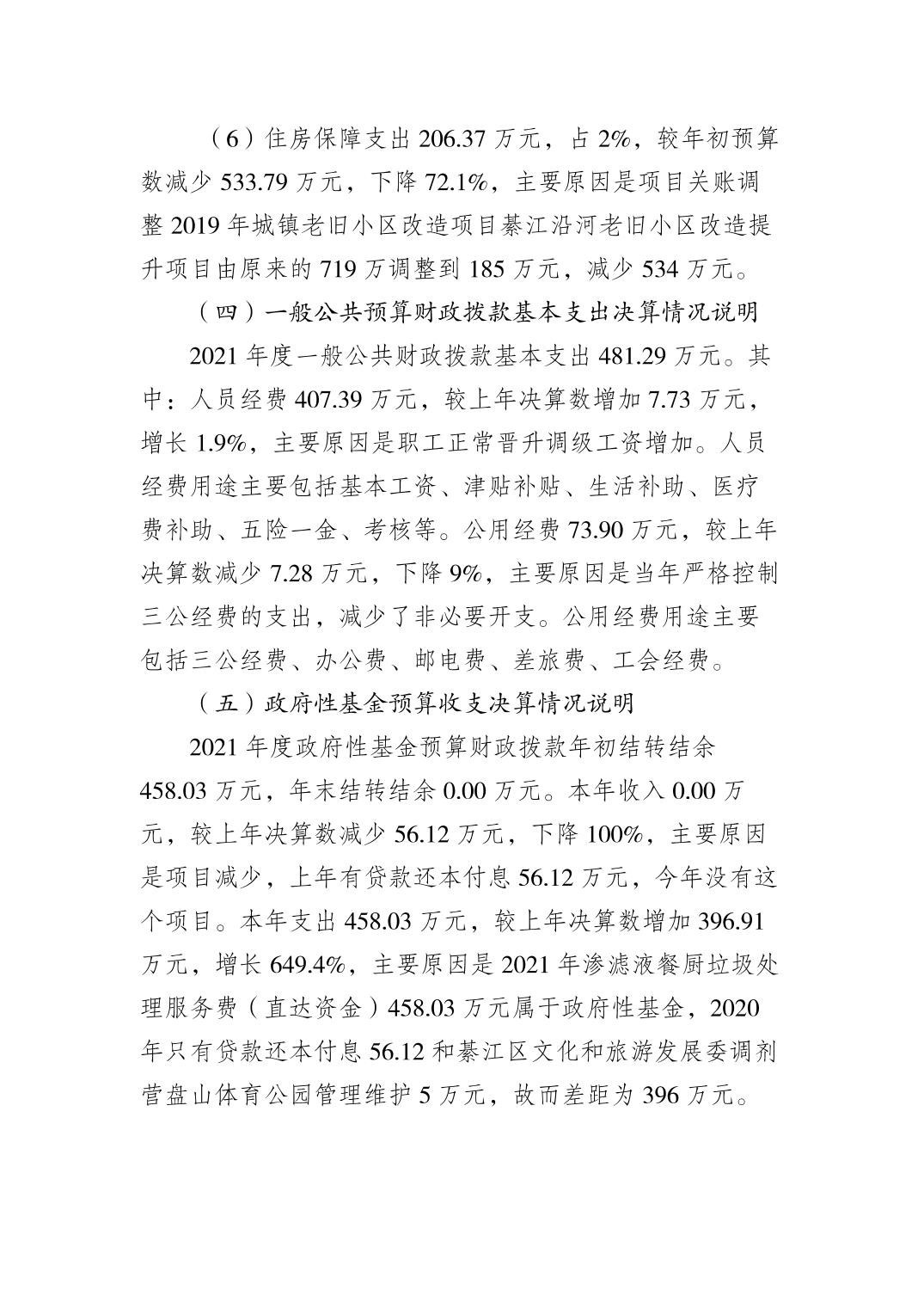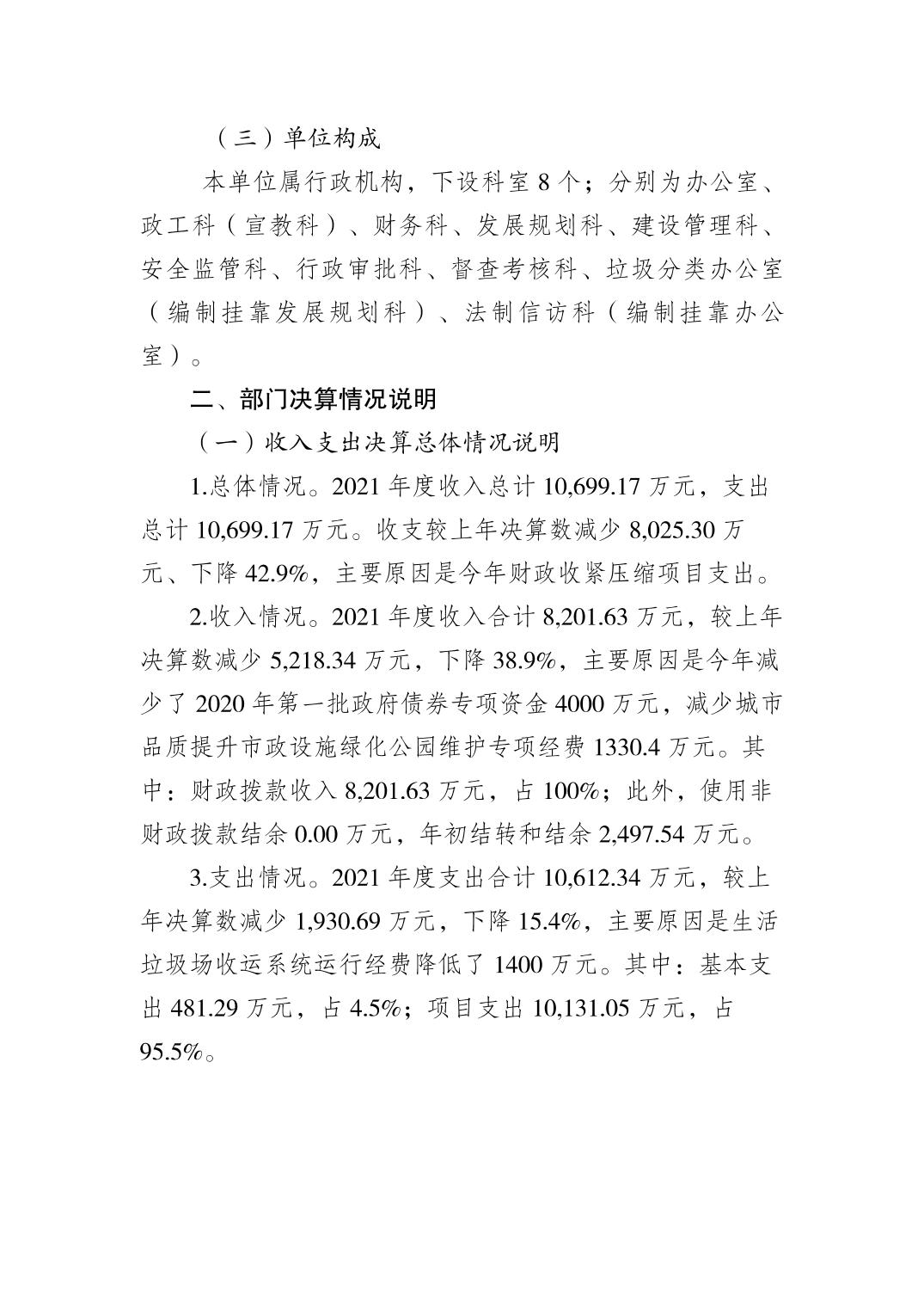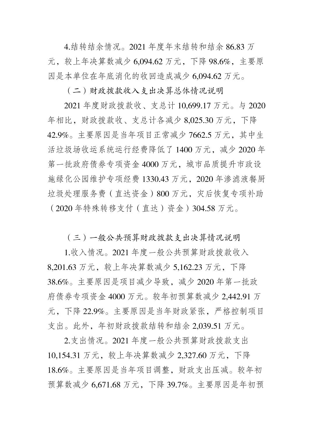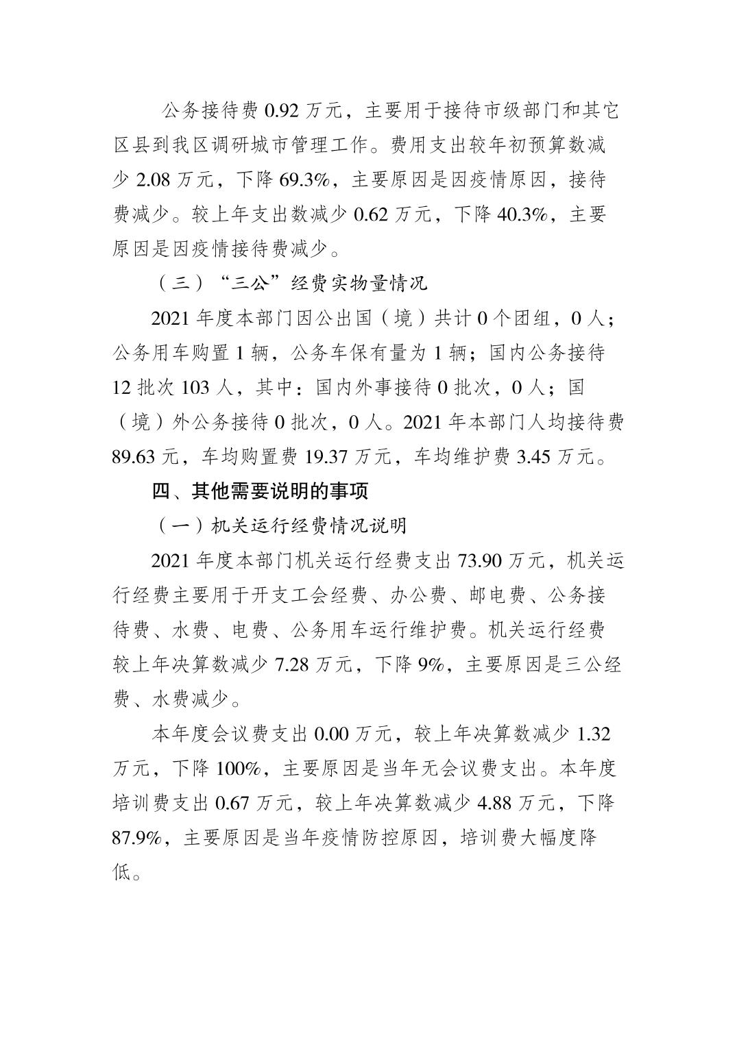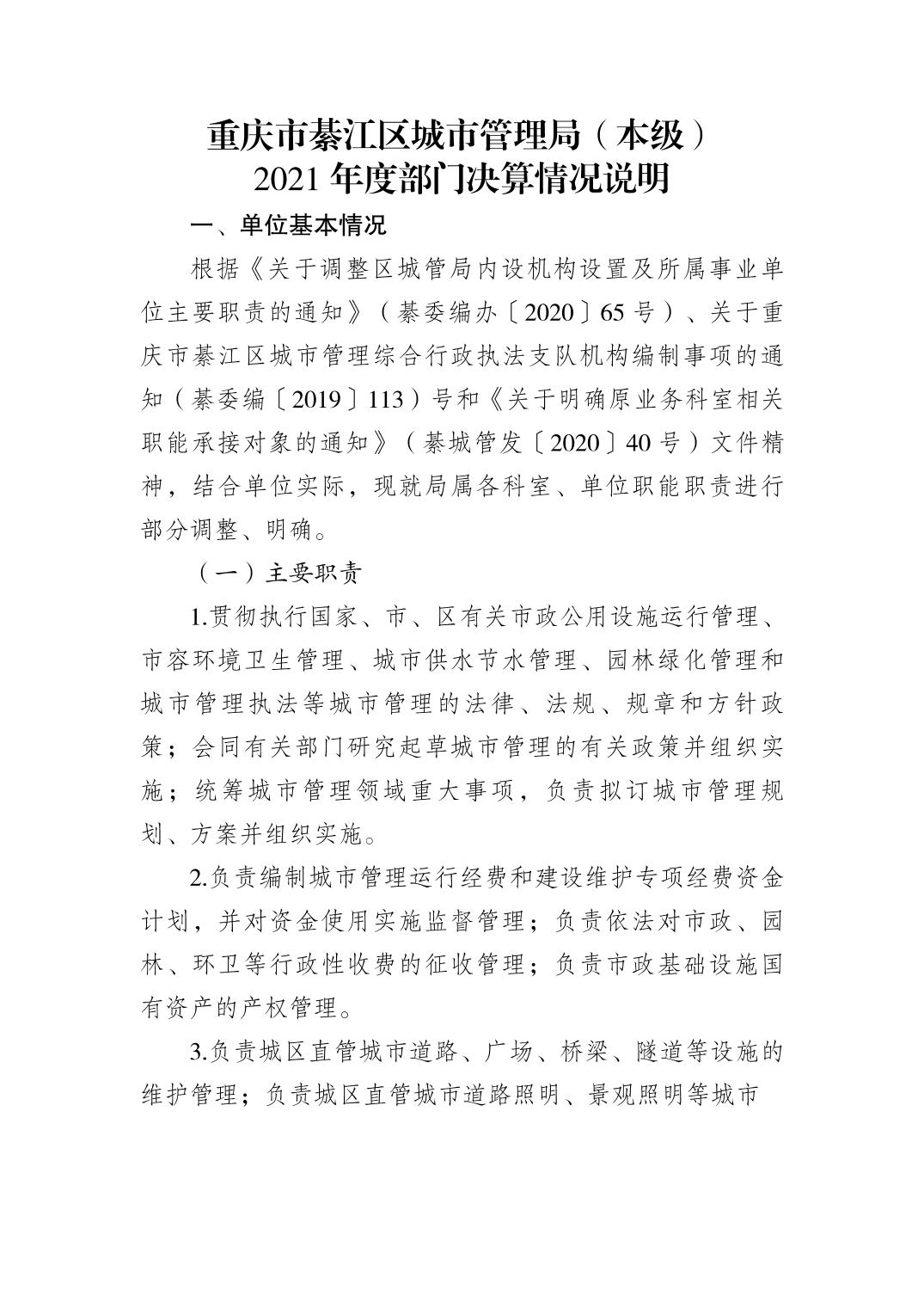 重慶市綦江區城市管理局(本級)2021年部門決算公開說明