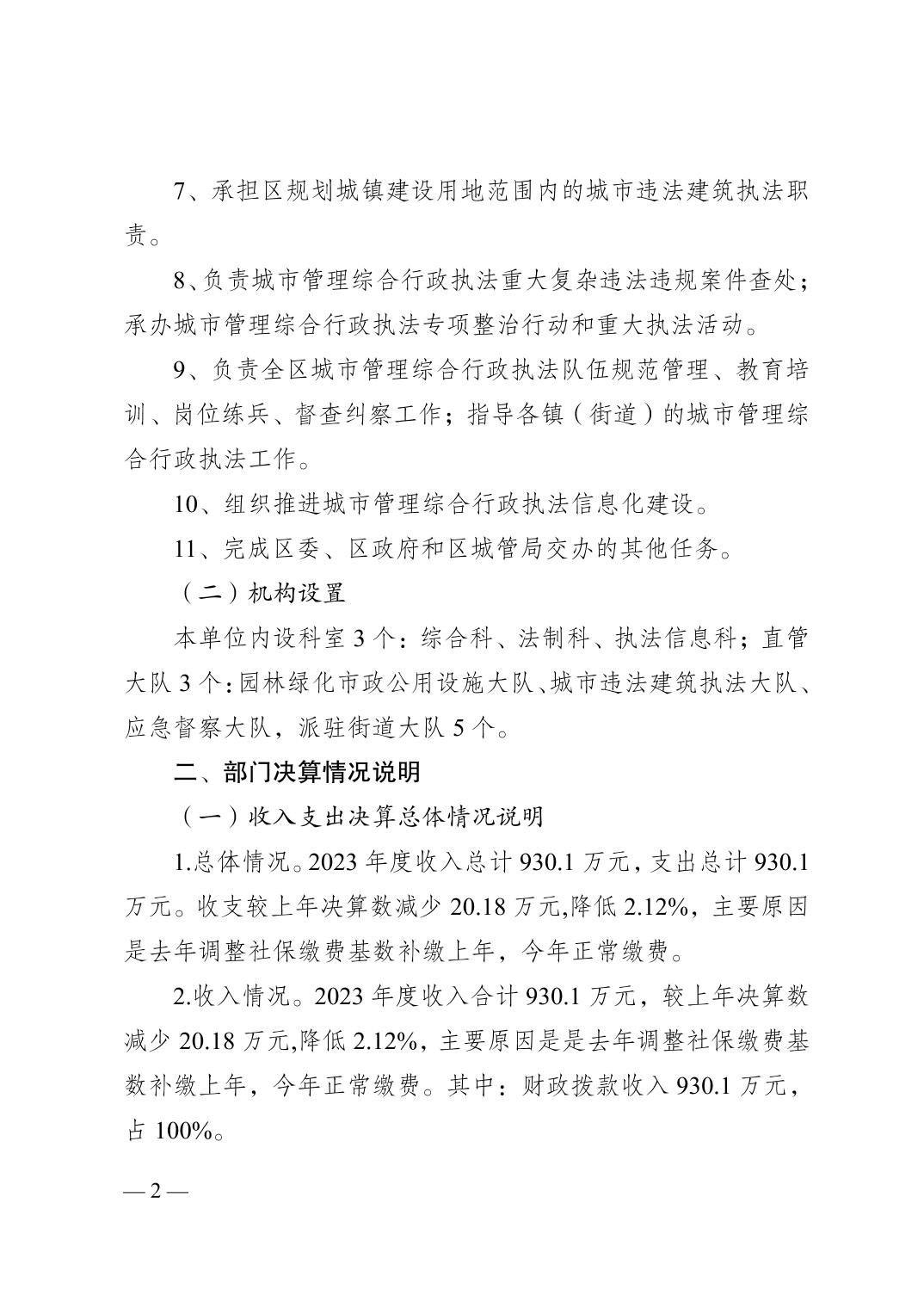 重慶市綦江區(qū)城市管理綜合行政執(zhí)法支隊2023 年度部門決算情況說明