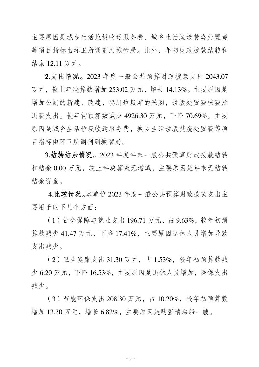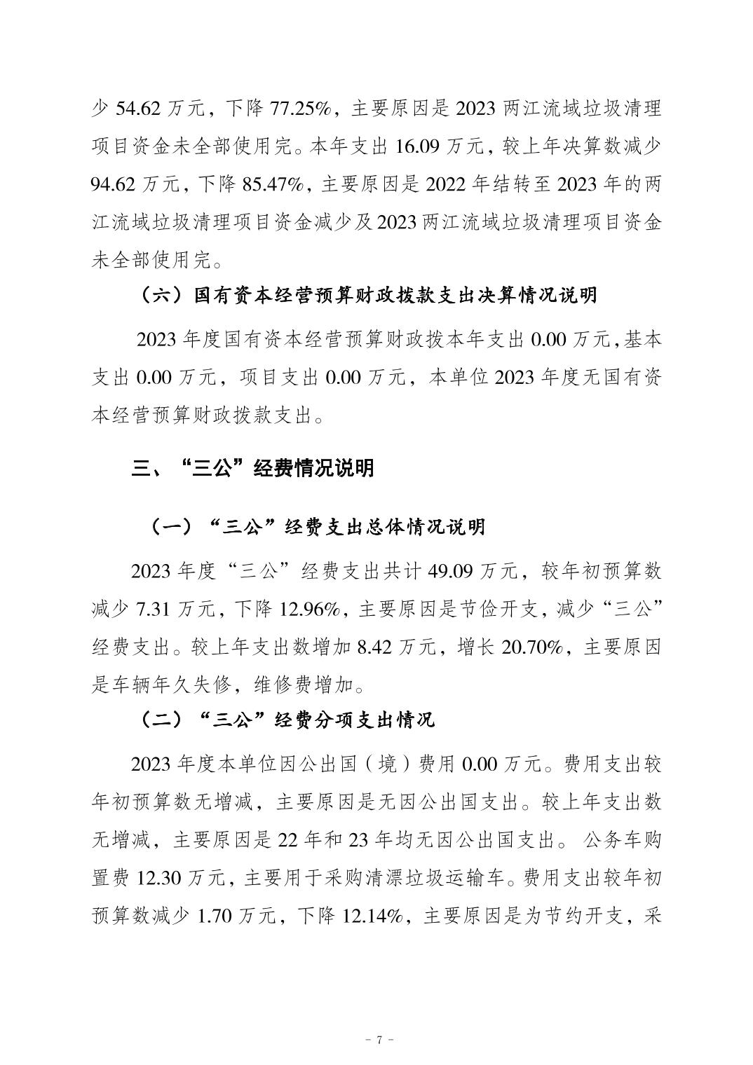 重慶市綦江區環境衛生管理所2023 年度決算公開說明