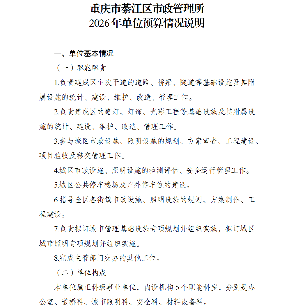 重慶市綦江區市政管理所2026年單位預算情況說明