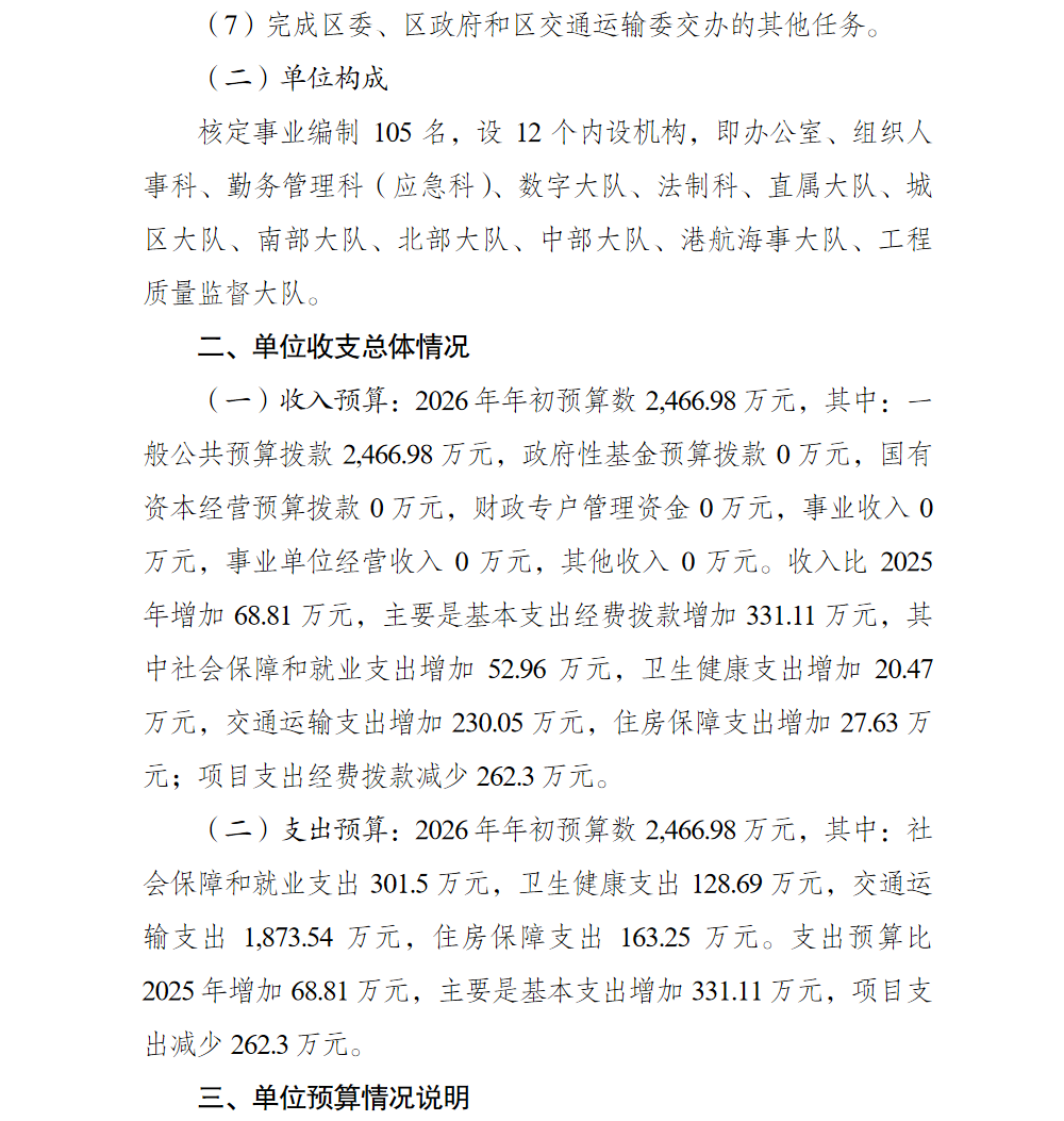 重慶市綦江區交通運輸綜合行政執法支隊2026年預算