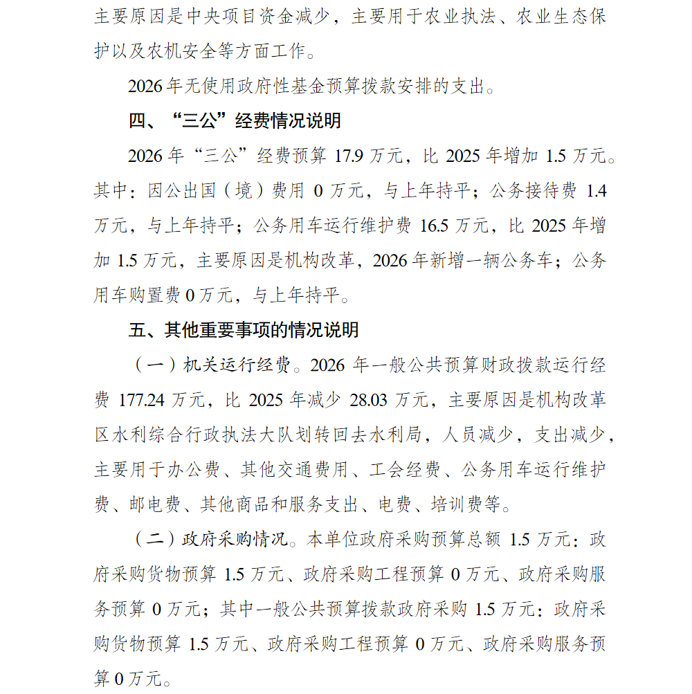 重慶市綦江區農業綜合行政執法支隊 2026年單位預算情況說明