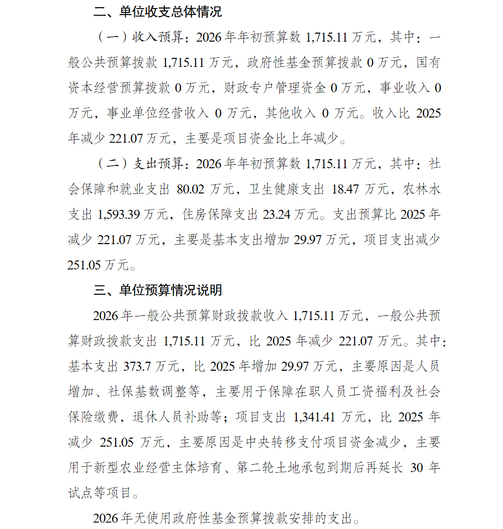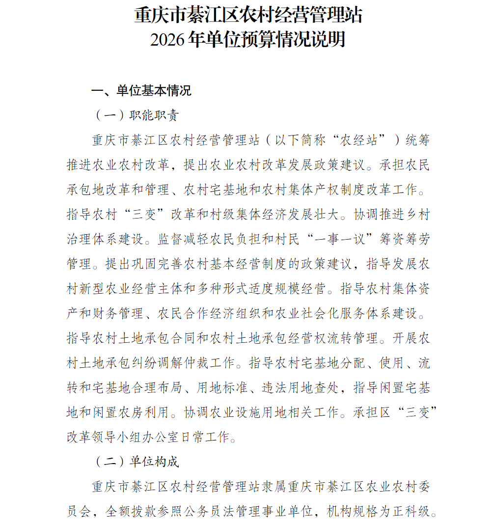 重慶市綦江區農村經營管理站 2026年單位預算情況說明