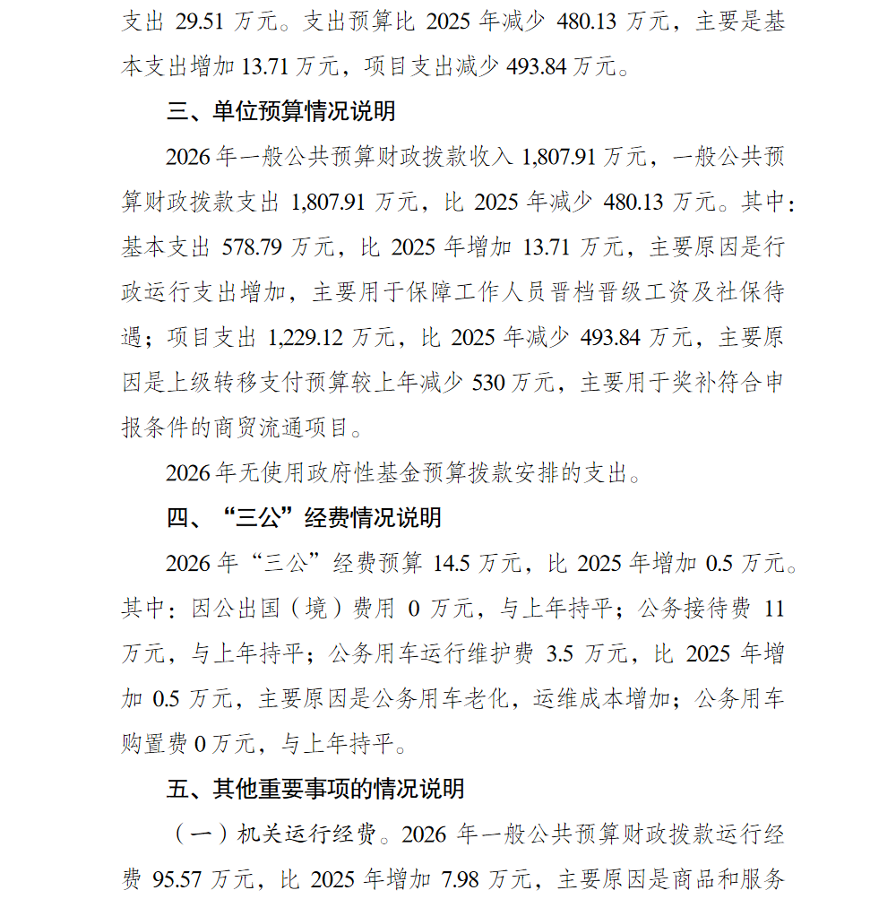 重慶市綦江區(qū)商務(wù)委員會(本級)2026年單位預(yù)算情況說明