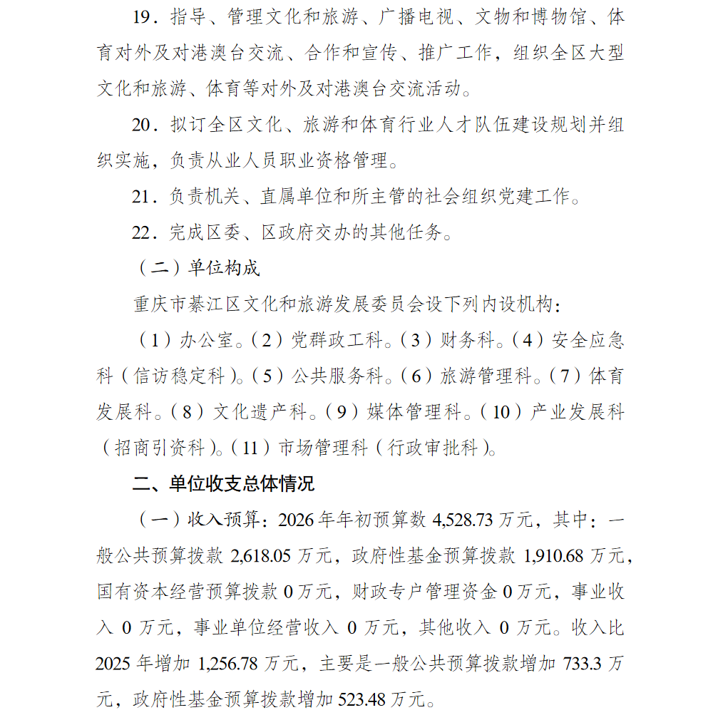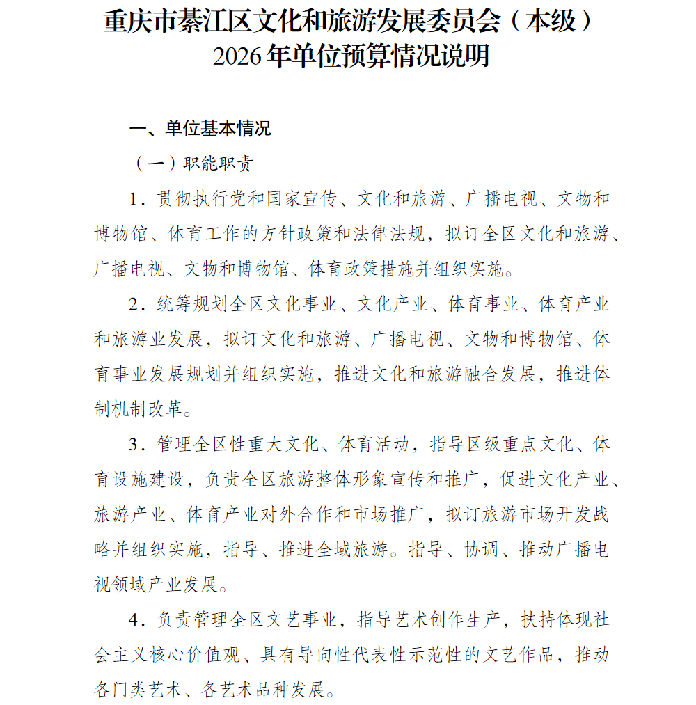 重慶市綦江區文化和旅游發展委員會(本級)2026年部門預算情況說明