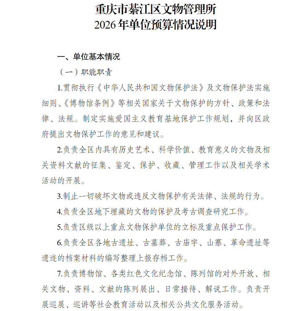 重慶市綦江區(qū)文物管理所2026年部門預(yù)算情況說明
