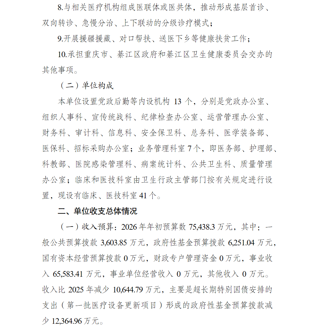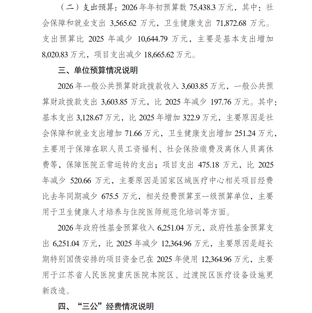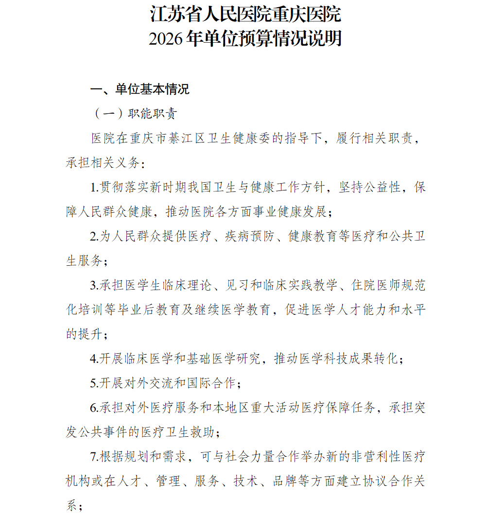 江蘇省人民醫院重慶醫院2026預算