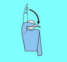 執裁手勢:一臂上舉,前臂下按至與肩平。