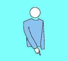 執裁手勢:兩臂前伸,掌心相對,略微上抬。
