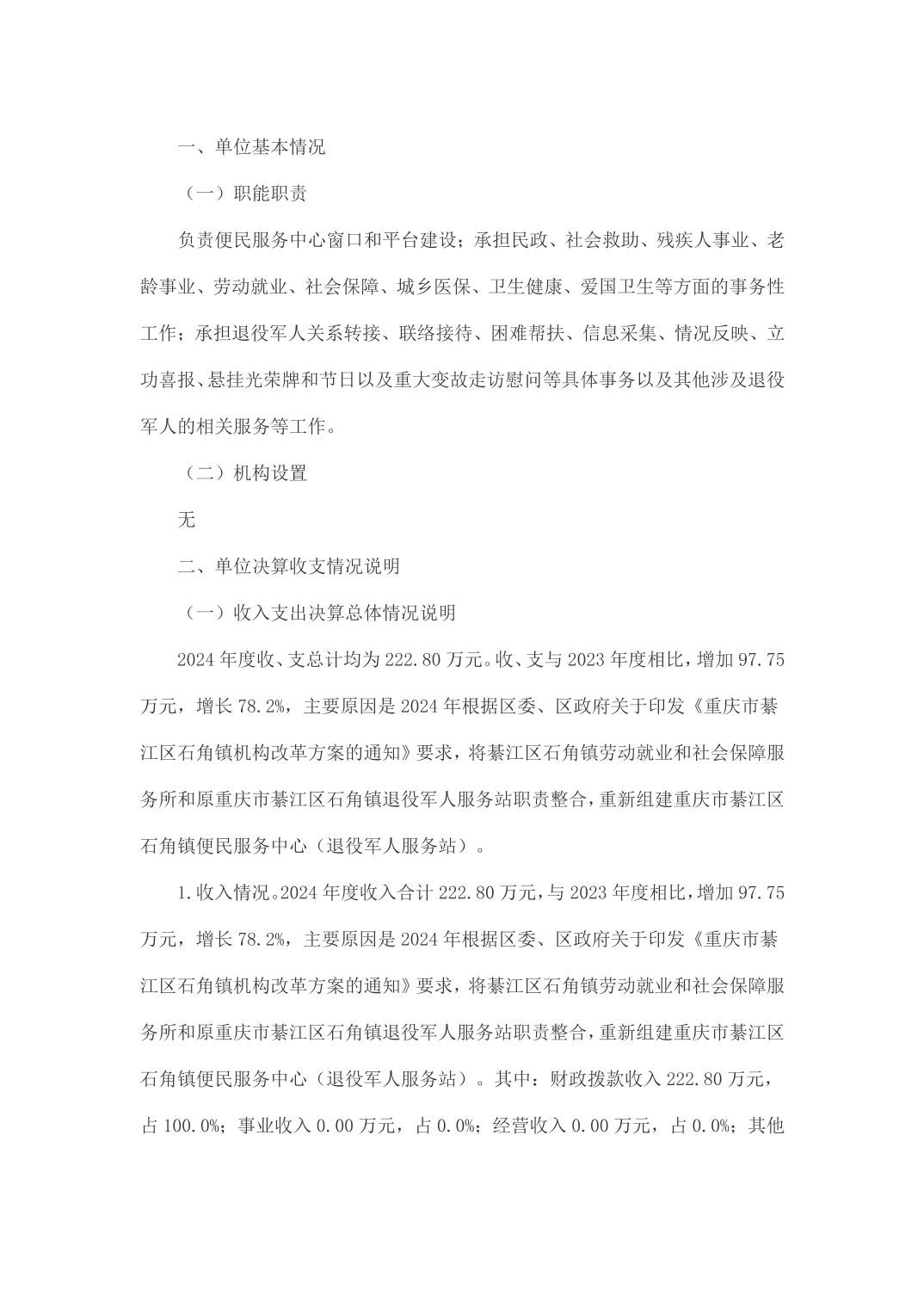 重慶市綦江區石角鎮便民服務中心(退役軍人服務站)2024年度決算情況說明