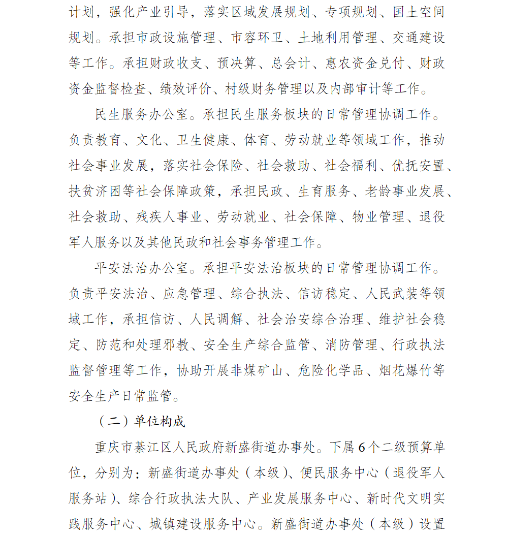 重慶市綦江區人民政府新盛街道辦事處2026年部門預算情況說明