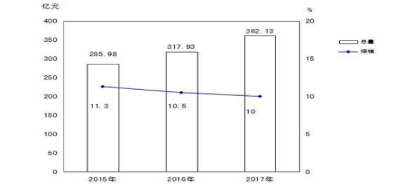 圖1 近三年地區(qū)生產(chǎn)總值總量及增幅