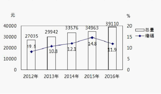 全年農村常住居民人均可支配收入12669元(市調查總隊調整我區2015年農村常住居民人均可支配收入為11538元),同比增長9.8%。其中人均工資性收入4847元,同比增長10.8%;人均家庭經營收入3468元,同比增長9.3%;人均財產性收入284元,同比增長7.2%;人均轉移性收入4070元,同比增長9.2%。人均消費支出10263元,同比增長10.7%。農村居民恩格爾系數39.2%,同比下降1.1個百分點。農村居民人均住房面積49.6平方米,同比增加1.18平方米。