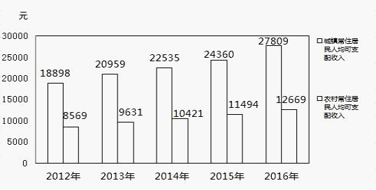 建區五年以來城鎮居民人均可支配收入年平均增長9.4%,農村常住居民人均可支配收入年平均增長11.8%。