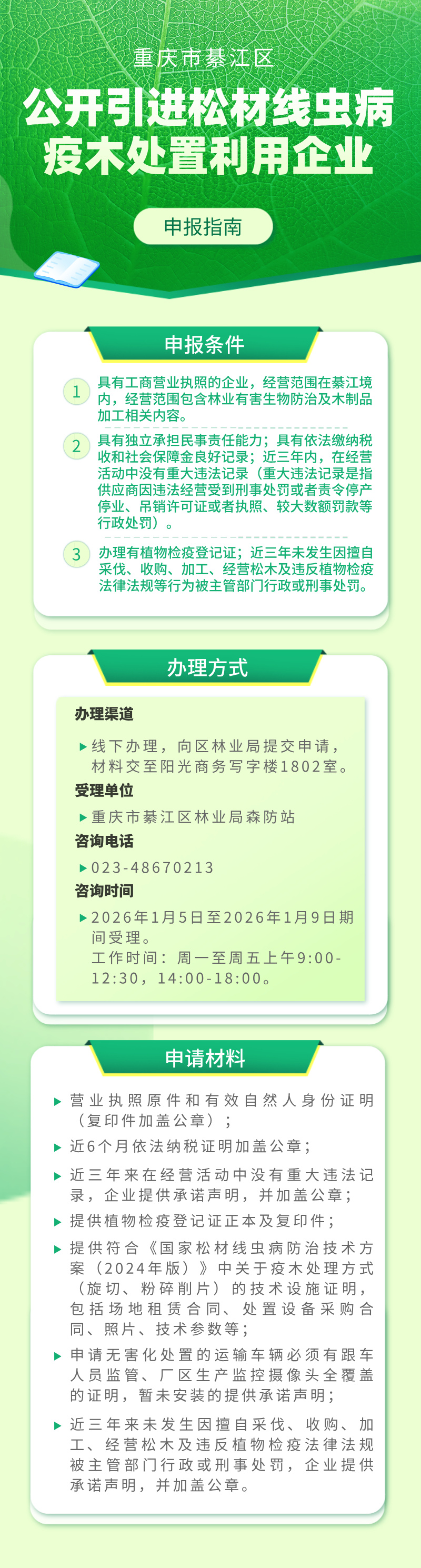 重慶市綦江區公開引進松材線蟲病疫木處置利用企業申報指南