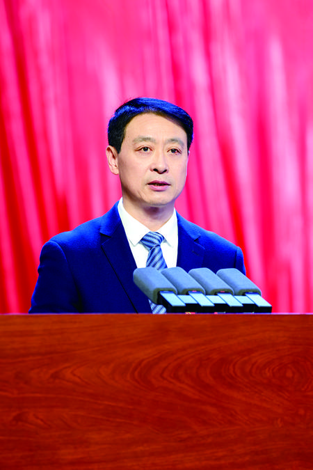 1月15日,區(qū)三屆人大六次會(huì)議舉行第二次全體會(huì)議,唐鵬程作區(qū)人大常委會(huì)工作報(bào)告。記者 王京華 攝